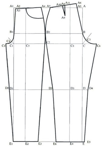 Проводим линию бокового шва по точкам А 7 В2 D5 Е6, линию