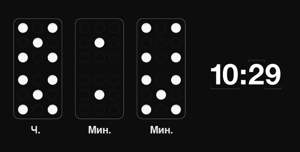 Первая из них показывает текущий час (логично, ведь на одной костяшке может уместиться ровно 12 точек – столько же и часов в дне или ночи). Вторая и третья костяшки показывают минуты: вторая – первую цифру, третья – вторую цифру. На фотографии, расположенной ниже на примере показано время как в «костяшечном» исполнении, так и традиционными цифрами. Думаю, привыкнуть к таким часам будет довольно просто.